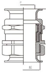 | 規(guī)格型號(hào) | 螺紋規(guī)格(mm) | 卡口范圍(mm) | 螺紋外徑(mm) | 螺紋長(zhǎng)度(mm) | 箱體孔徑(mm) | 對(duì)邊 |